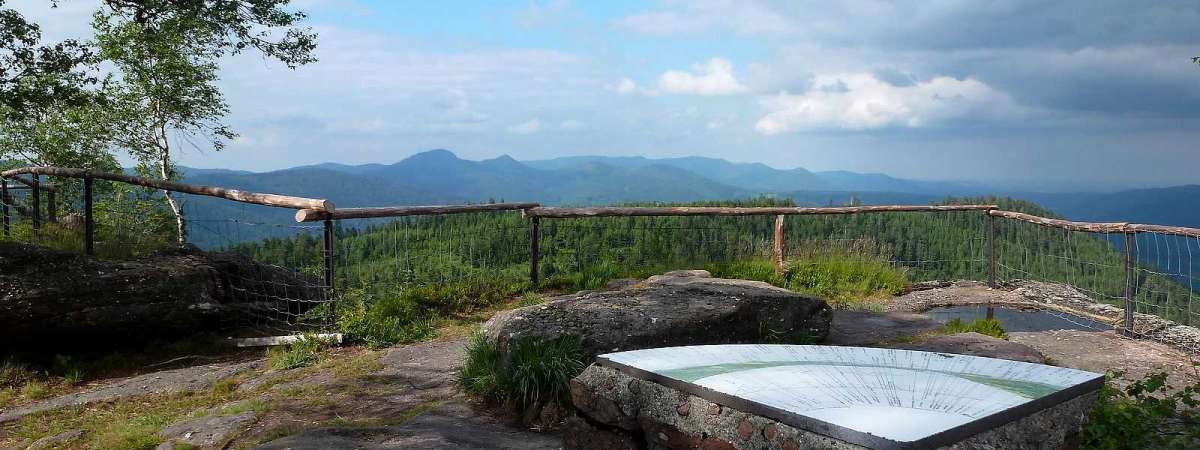 La Chatte Pendue gaat tot 899 meter hoogte, waar u een prachtig zicht op het massief van Climont en de Donon kan bewonderen. Vroeger werd ze "Pirre hhatte pendaïe", genoemd, “Hoge hangende steen”. De gutturale uitspraak van de “h” of transcriptiefouten zouden “hhatte” in “chatte” veranderd hebben. In 1847 vermeldt een mooie handgeschreven kaart van waterwegen en bossen dus “Pierre de la Chatte Pendue.”